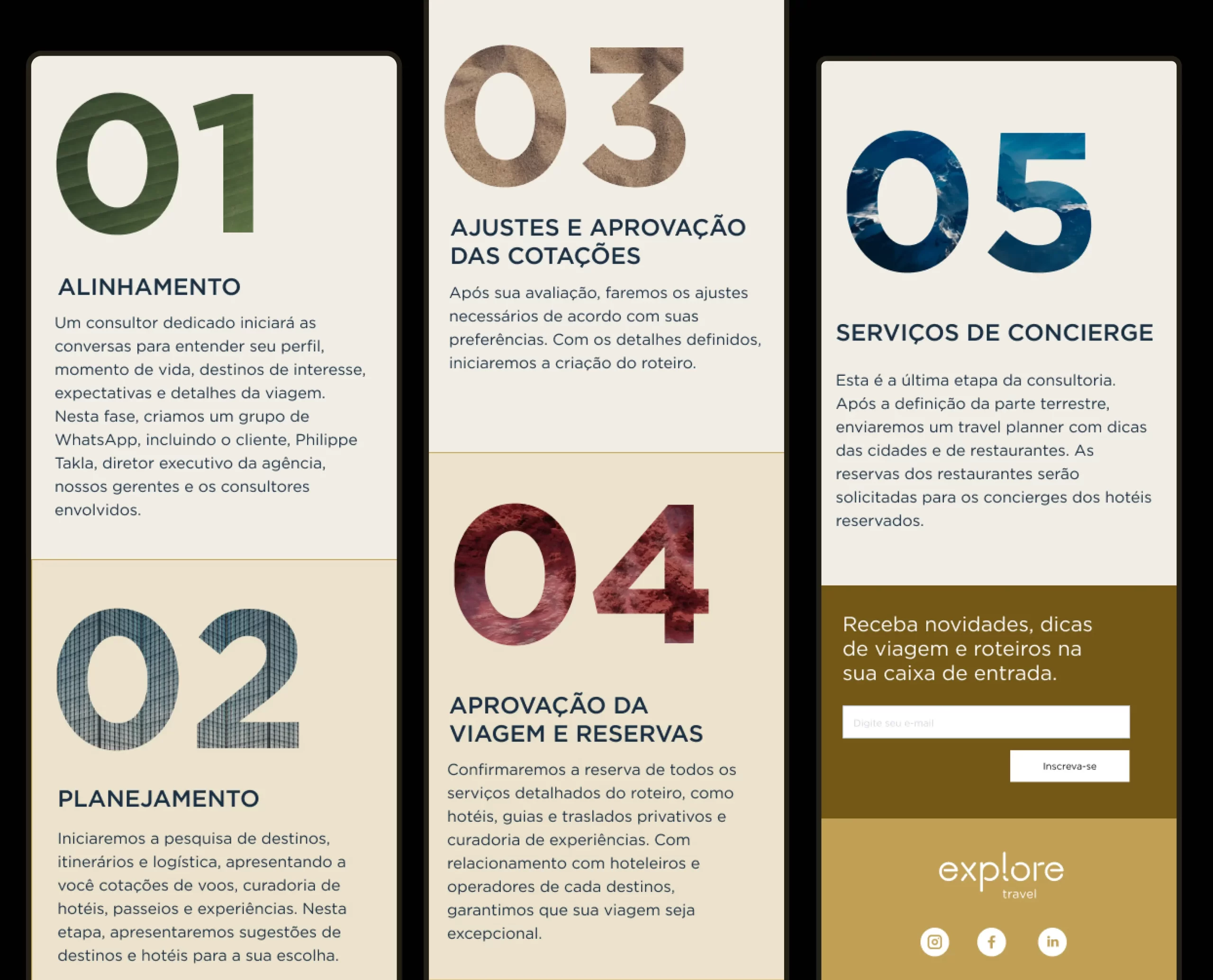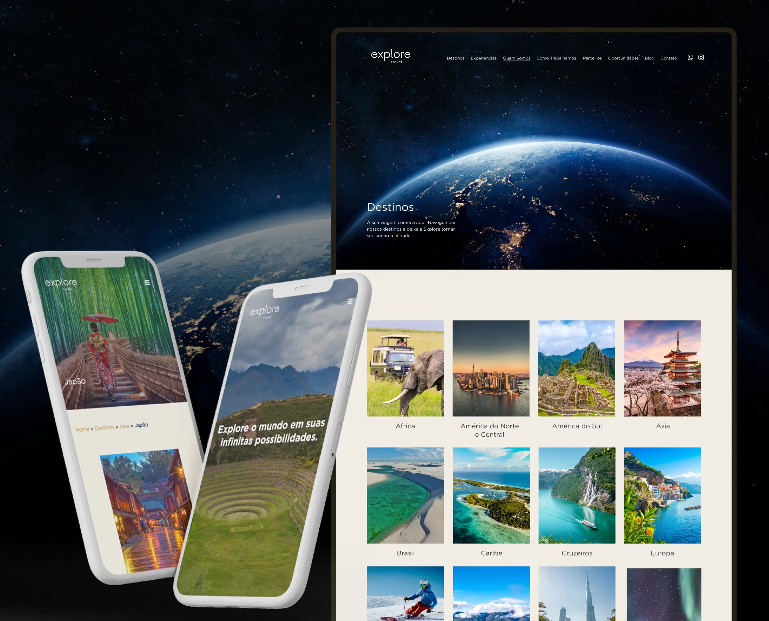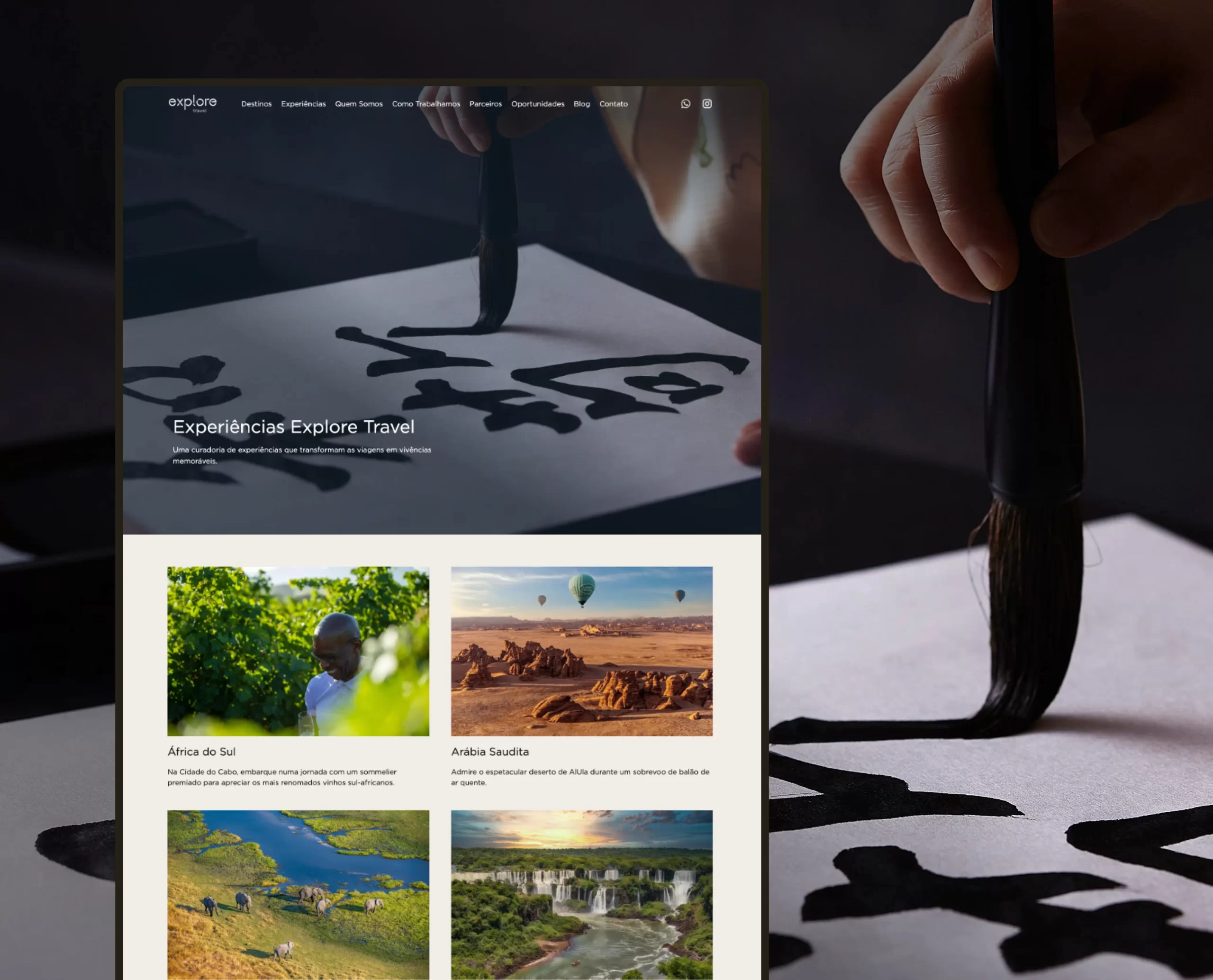 O novo site da Explore Travel é uma plataforma completa, com navegação intuitiva entre destinos e hotéis, além de páginas institucionais, tudo com uma navegação fluída e um design refinado.